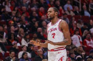 火箭球星杜蘭特戰(zhàn)舊主上半場三分沒開,他出戰(zhàn)19分鐘,10投5中,三分3中0,罰球2中2,得到了12分3籃板6助攻,正負(fù)值+6。