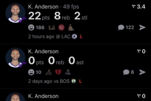 李凱爾今日賽前已連續(xù)7場遭DNP 上一次出戰(zhàn)是2025年12月16日對獨(dú)行俠
