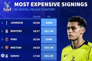 1. 約翰遜(熱刺),25/26賽季,4000萬歐元