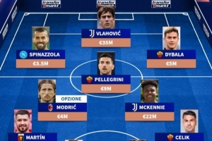 前鋒:斯皮納佐拉(那不勒斯,3500萬歐元)、弗拉霍維奇(尤文圖斯,3500萬歐元)、迪巴拉(500萬歐元)