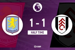 傷停補(bǔ)時(shí)2分鐘。上半場(chǎng)比賽結(jié)束,阿斯頓維拉1-1富勒姆。