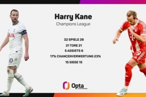 體育資訊10月1日訊 根據(jù)統(tǒng)計(jì),凱恩為拜仁出戰(zhàn)26場歐冠,已經(jīng)打入了21粒進(jìn)球,這一數(shù)字已經(jīng)追平了他在熱刺效力期間32場歐冠比賽的總進(jìn)球數(shù)。