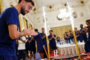 體育資訊9月9日訊 9月8日是葡萄牙中場布魯諾-費(fèi)爾南德斯的生日,由于適逢國際比賽日,曼聯(lián)隊(duì)長和國家隊(duì)隊(duì)友度過了一個(gè)難忘的生日。
