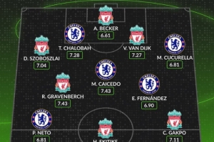 體育資訊10月4日訊 本輪英超焦點(diǎn)戰(zhàn)利物浦對陣切爾西比賽即將打響,數(shù)據(jù)網(wǎng)站W(wǎng)hoscored也盤點(diǎn)了兩隊(duì)球員本賽季英超評分最高陣容,具體如下: