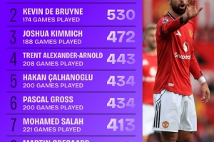 體育資訊10月10日訊 據(jù)Squawka統(tǒng)計(jì),2019-2020賽季以來,B費(fèi)創(chuàng)造557次機(jī)會,五大聯(lián)賽同期最多。