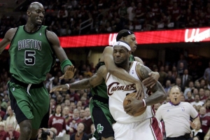 2010年東部半決賽(騎士VS綠軍)G4中,詹姆斯在完成后場搶斷后準備上籃,緊隨身后的皮爾斯采取犯規(guī)戰(zhàn)術(shù),兩人互相抱著摔入了觀眾席。詹姆斯的母親在現(xiàn)場觀戰(zhàn)憤怒不已,詹姆斯在一旁對著母親大吼道:“Sit down!(你給我坐下!)。