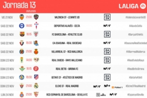 體育資訊10月20日訊 西甲官方公布第13輪比賽時(shí)間,11月22日23:15巴薩對(duì)陣畢巴,皇馬24日4點(diǎn)出戰(zhàn)。