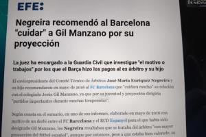 根據(jù)案卷記錄,在2016年5月針對希爾-曼薩諾執(zhí)法的巴薩對陣西班牙人德比戰(zhàn)所撰寫的報告中,內(nèi)格雷拉父子強(qiáng)調(diào)該裁判是“西班牙足球界最具發(fā)展?jié)摿Φ牟门小?,盡管當(dāng)時其雖獲良好評價,但執(zhí)法水平“僅屬良好”。