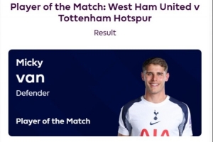 體育資訊9月14日訊 英超第4輪,熱刺客場(chǎng)3-0擊敗西漢姆。據(jù)英超官方消息,熱刺后衛(wèi)范德文被評(píng)為此役全場(chǎng)最佳,共獲56%的投票。