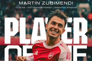 體育資訊9月14日訊 阿森納官方宣布,蘇維門(mén)迪當(dāng)選3-0諾丁漢森林的隊(duì)內(nèi)最佳球員。