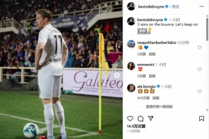德布勞內(nèi)寫(xiě)道“:連勝3場(chǎng)!讓我們繼續(xù)加油??”