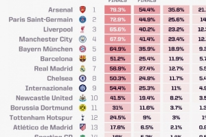 Opta歐冠奪冠概率(前10位):