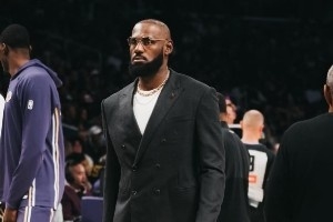 詹姆斯曬出一組他身穿西裝在現(xiàn)場觀眾湖人賽季揭幕戰(zhàn)的圖片,并配文了兩個表情:????。