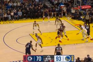 庫里命中三分之后一回合,科爾將其換下。