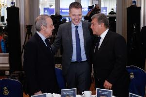 然而在馬德里法院宣布裁決結果后,巴薩的態(tài)度與皇馬截然不同,雖然巴薩尚未正式推出歐超項目,但球隊主席拉波爾塔在與歐足聯(lián)主席切費林建立對話后,俱樂部已逐步回歸歐足聯(lián)體系。
