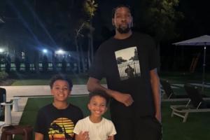 體育資訊09月15日訊 現(xiàn)火箭隊(duì)球探、前火箭球員DJ-奧古斯汀今日更新Instagram,曬出了自己倆兒子和杜蘭特的合影,并寫(xiě)道:“杜叔叔@杜蘭特?!?/p>