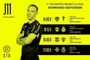 西甲第11輪部分場次裁判安排: