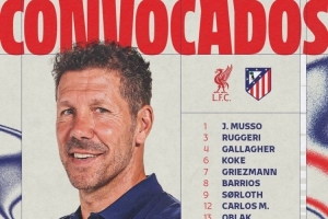 體育資訊9月16日訊 北京時間9月18日凌晨,馬競將在歐冠比賽中客場對陣利物浦,馬競公布了此役的球員名單,吉梅內斯、巴埃納、阿爾馬達、阿爾瓦雷斯(對陣黃潛因身體不適離場)、卡爾多索(訓練中左腳踝扭傷)不會隨隊出征。