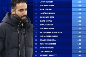 體育資訊11月25日訊 《轉(zhuǎn)會市場》統(tǒng)計(jì)了阿莫林執(zhí)教第一年在老特拉福德的場均拿分情況,1.43分僅能位列隊(duì)史第16位。