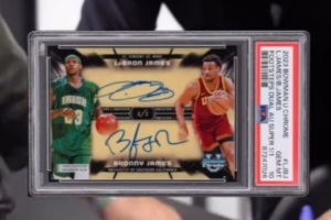 體育資訊11月25日訊 球星卡Topps社媒更新動(dòng)態(tài),曬出了詹姆斯第一次簽了自己和布朗尼的雙簽名卡時(shí)的視頻。
