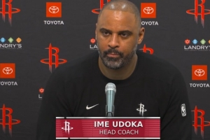 賽后主帥烏度卡接受了采訪。談到對(duì)陣舊將狄龍,烏度卡說(shuō):“狄龍?jiān)诒荣愔斜憩F(xiàn)出色,讓人感受到他的額外侵略性和動(dòng)力。他投進(jìn)了一些高難度的球,展現(xiàn)了他近期的良好狀態(tài)。我們知道他會(huì)帶著強(qiáng)烈的侵略性和動(dòng)力打比賽?!?/p>