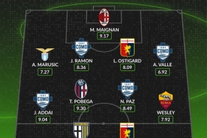 中場:杰登·阿代(科莫,9.04分)、托馬索·波貝加(博洛尼亞,9.30分)、尼科·帕斯(科莫,8.49分)、韋斯利·法蘭卡(羅馬,7.92分)