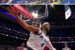 對(duì)此,ESPN評(píng)論道:“薩格斯意欲復(fù)刻韋德和詹姆斯的經(jīng)典空接???!?/p>