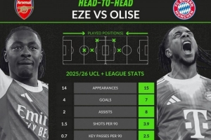 體育資訊11月26日訊 拜仁和阿森納即將迎來歐冠榜首之爭,兩位前水晶宮球員奧利塞和埃澤當前狀態(tài)火熱。whoscored也對比了兩人本賽季聯(lián)賽+歐冠的場均關鍵數(shù)據(jù),后者全面占優(yōu)。