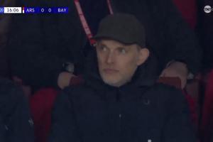 體育資訊11月27日訊 阿森納vs拜仁第17分鐘,轉(zhuǎn)播鏡頭給到看臺,英格蘭主帥圖赫爾在現(xiàn)場。