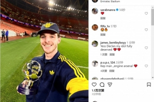 此役賴斯為阿森納踢滿全場表現(xiàn)出色,當(dāng)選全場最佳球員,賴斯社媒曬出手拿全場最佳獎杯的照片,慶祝球隊取勝。