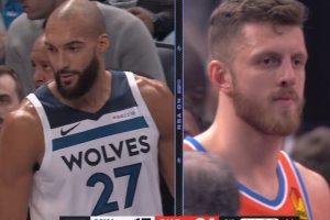 GIF-戈貝爾擊中哈滕面部被吹技犯,森林狼挑戰(zhàn)成功