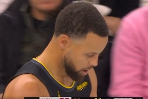 GIF-庫里傳球直接傳出界外 自己也有點(diǎn)沮喪