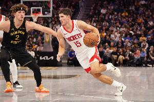 即勇士鼓勵單打,輕易不夾擊申京,不讓火箭其他人展開輕松的4打3。申京和謝潑德打得熱鬧,但火箭全隊上半場僅得了47分,勇士的防守戰(zhàn)略起到了效果。