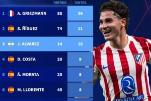 體育資訊11月27日訊 在本輪歐冠馬競2-1擊敗國米的比賽中,阿爾瓦雷斯破門,打進(jìn)馬競生涯歐冠第10球。以下為馬競隊史歐冠進(jìn)球榜:
