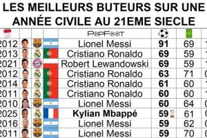 單年度進(jìn)球數(shù)排名