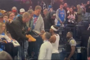 亞歷山大在賽前為主場球迷簽名,來者不拒。而球迷也排起了長隊。