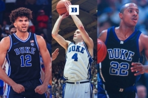 這是卡梅隆·布澤爾賽季前8場(chǎng)比賽中,第二次砍下單場(chǎng)35分。自1985-86賽季NCAA引入投籃時(shí)間限制以來(lái),杜克大學(xué)歷史上只有三位球員做到過(guò)單賽季多次單場(chǎng)得分35+。另外兩位是雷迪克(兩個(gè)賽季做到,05-06賽季更是單賽季7次、其中包括3場(chǎng)40+)、杰伊·威廉姆斯(注:圖中標(biāo)注賽季有誤,應(yīng)為01-02賽季)