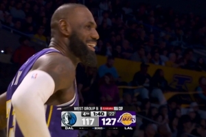 GIF-東契奇助攻詹姆斯三分命中