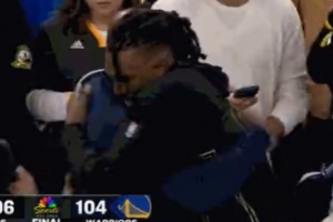 GIF-盧尼賽后和勇士眾將擁抱寒暄