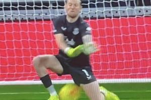 這次撲救中,皮克福德疑似閉眼導致出現(xiàn)下蛋失誤,引發(fā)球迷群嘲。丟球后,皮克福德懊惱跪地,無奈搖頭苦笑,并與隊友進行了一番交流。