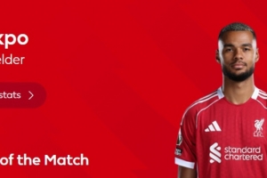 本場比賽加克波表現(xiàn)不俗,傳射建功,賽后他也當選英超官方球迷票選全場最佳球員。