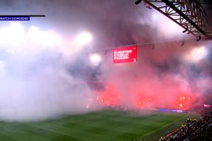 球迷為紀(jì)念逝者而兩度燃放煙花,阿賈克斯比賽中斷43分鐘后被取消
