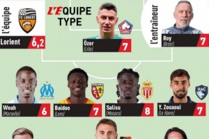 體育資訊12月1日訊 法甲第14輪戰(zhàn)罷,法媒隊報評本輪聯(lián)賽最佳陣,托萬、維阿、托利索在列。
