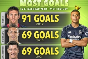 體育資訊12月1日訊 數(shù)據(jù)網(wǎng)站Score90盤點(diǎn)了21世紀(jì)以來(lái)單一自然年進(jìn)球榜,其中梅西91球高居榜首,姆巴佩今年60球第6,具體如下: