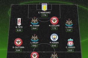 體育資訊12月1日訊 本輪英超已經(jīng)完賽,whoscored也統(tǒng)計(jì)了本輪英超評分最佳陣,紐卡4將在列、布倫特福德3人入圍。