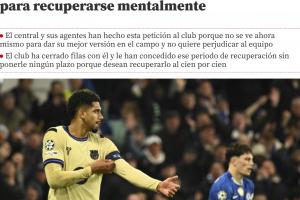 體育資訊12月01日訊 據(jù)《世界體育報》最新消息,在歐冠對陣切爾西領(lǐng)到紅牌之后,巴薩中衛(wèi)阿勞霍向俱樂部申請了一段心理恢復(fù)期。