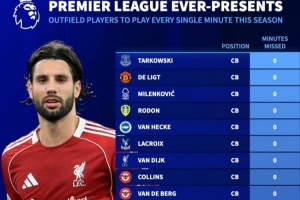 體育資訊12月1日訊 英超已經(jīng)戰(zhàn)罷13輪,《轉(zhuǎn)會市場》統(tǒng)計(jì)了本賽季至今一分鐘都未缺席的全勤非門將球員,共計(jì)16人: