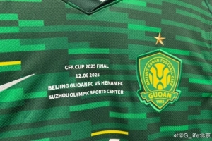 體育資訊12月2日訊 據(jù)博主“G_life北京”透露,為迎接12月6日的足協(xié)杯決賽,國(guó)安俱樂(lè)部已經(jīng)發(fā)布了足協(xié)杯決賽版球衣。