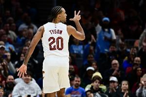 本場比賽,騎士球員泰森表現(xiàn)出色,進(jìn)攻端十分高效籃板也上雙,在31分鐘的時(shí)間里,投籃13中10,三分球5中4,罰球3中3,砍下27分11籃板4助攻1搶斷的數(shù)據(jù),正負(fù)值+23。