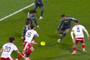 西甲第14輪,皇馬客場(chǎng)1-1戰(zhàn)平赫羅納,讀秒階段皇馬獲得絕殺機(jī)會(huì),貝林厄姆禁區(qū)橫敲,正對(duì)球門的羅德里戈調(diào)整步點(diǎn)準(zhǔn)備射門,這時(shí)正對(duì)來(lái)球但側(cè)對(duì)球門的姆巴佩半路殺出,轉(zhuǎn)身兜射打偏。